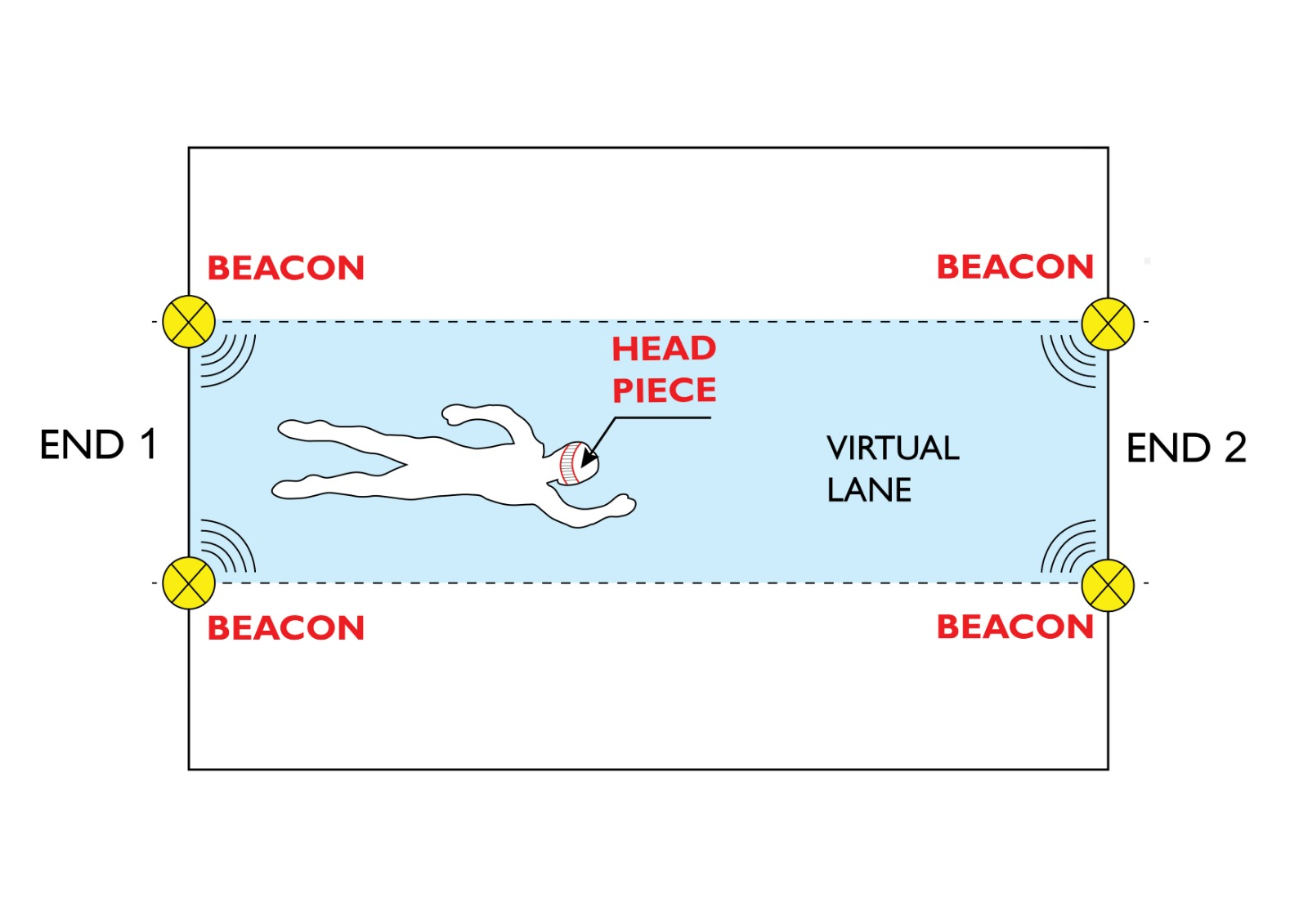 Four compact beacons are placed at the corners of the pool lane. These beacons act as distance trackers and work together to create a virtual swimming lane, defining the safe boundaries and coordinates within the pool.